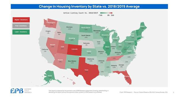 While housing inventory remains a challenge for us here in our local markets, there are some parts of the country where inventory is now higher than it was pre-pandemic. These tend to be markets that saw the hottest price growth over the past few years, such as Texas and Florida. As inventory increases, it’s expected that price growth will cool and could possibly turn negative.